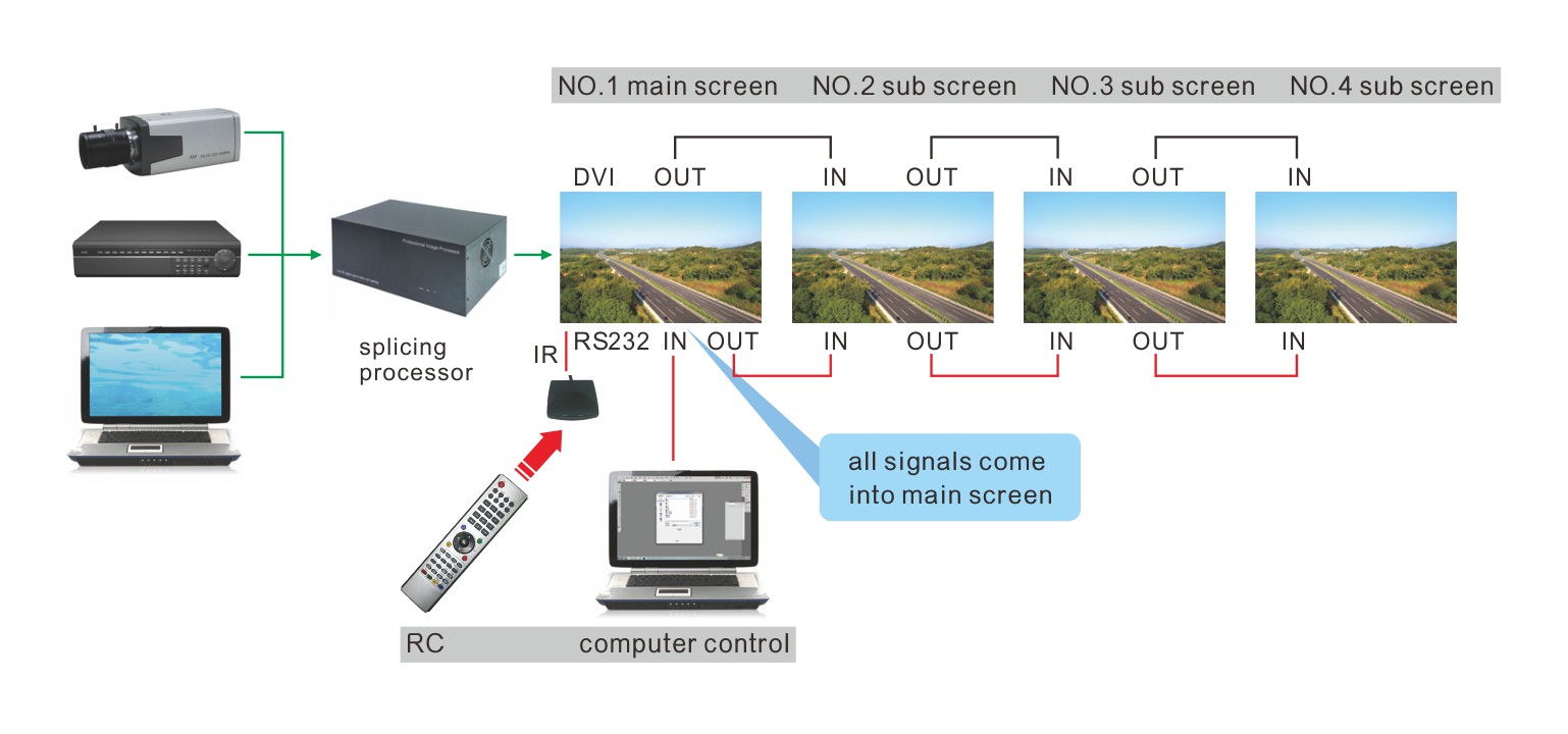 1. Bağlantı M x N Grup (Girişler: VGA, DVI, AV, Y/C, YPrPb, HDMI) video sinyali aynı anda kullanabilirsiniz